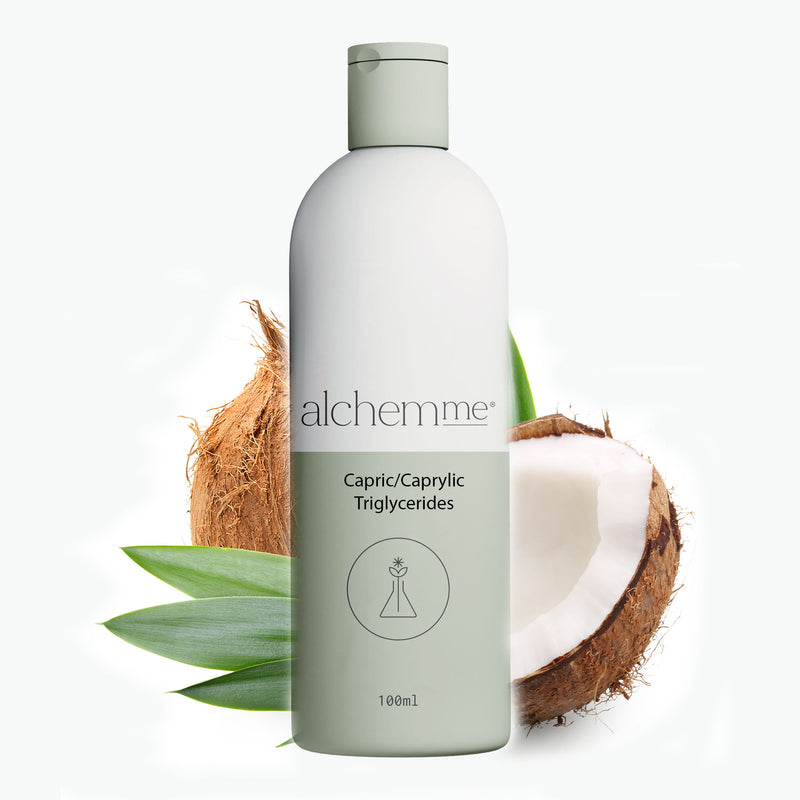 Caprylic/capric triglycerides are synthetic esters derived from coconut oil, specifically the caprylic and capric acids found in coconut oil. These triglycerides undergo a process known as esterification, where they are combined with glycerin to create a stable, odourless, and colourless liquid. Unlike fractionated coconut oil, caprylic/capric triglycerides consist solely of these medium-chain fatty acids, making them even lighter and more rapidly absorbed by the skin.